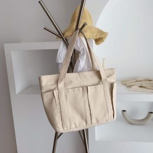 Tote bag bahan kanvas dengan banyak kantong sudah include sablon